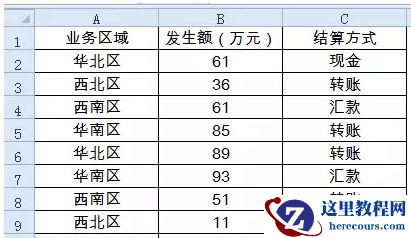 如下图所示,要计算“华南区”的“转账”的业务笔数。