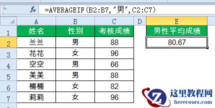 如下图所示,要统计男生平均考核成绩: