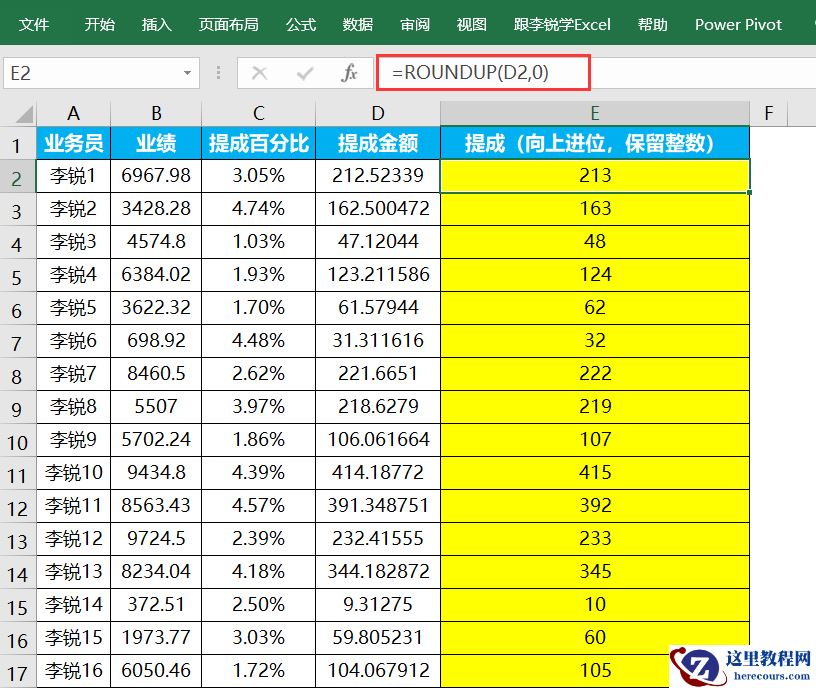 案例2:向上进位,保留整数