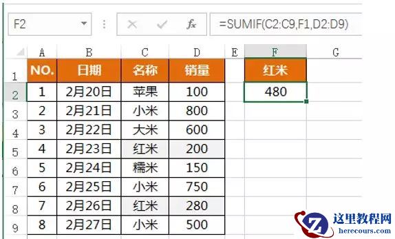 5、计算某一个单元格中名称的销量总额