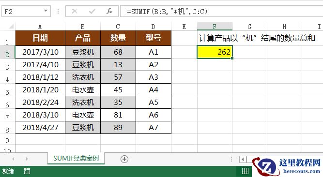 案例5:计算产品以“机”结尾的数量总和