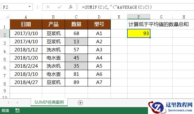 案例3:计算低于平均值的数量总和