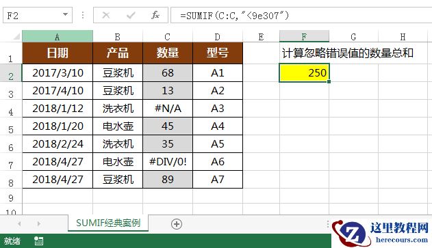 案例7:计算忽略错误值的数量总和