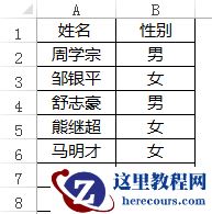 统计男性有多少人:=COUNTIF(B2:B8,”男”)
