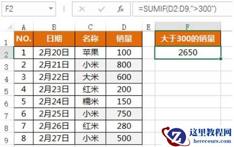 用法:=SUMIF(条件范围,要求,汇总区域)