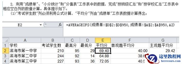 这里我们要求每个中学的平均分,在“成绩单”工作表中有每个中学每个班级的平均分,所以需要用到条件求平均值,可以用多条件求平均值AVERAGEIFS来做,在E2单元格输入“=AVERAGEIFS云 ”,点击fx打开函数对话框。
