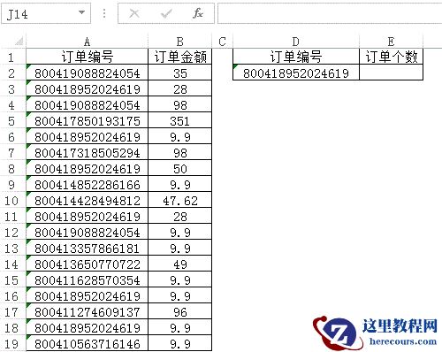 根据指定范围计算指定值出现的次数。=COUNTIF(单元格区域,计数条件)案例公式为:=COUNTIF(A2:A19,D2)