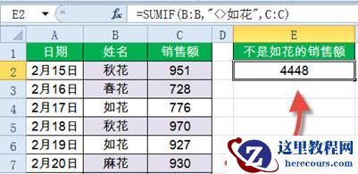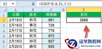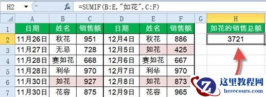 =SUM(SUMIF(B:B,{“如花”,”秋花”},C:C))