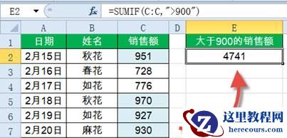 注意,当使用其他公式作为求和条件时,如果在求和条件的公式前使用大于、小于、不等于这些比较运算符,运算符前后要使用半角引号,同时要使用连接符&,将比较运算符与公式连接起来。