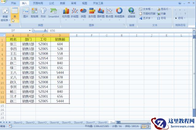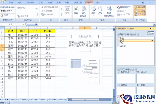 2、将部门字段拖动到行标签,销售额字段拖动到数值区域;