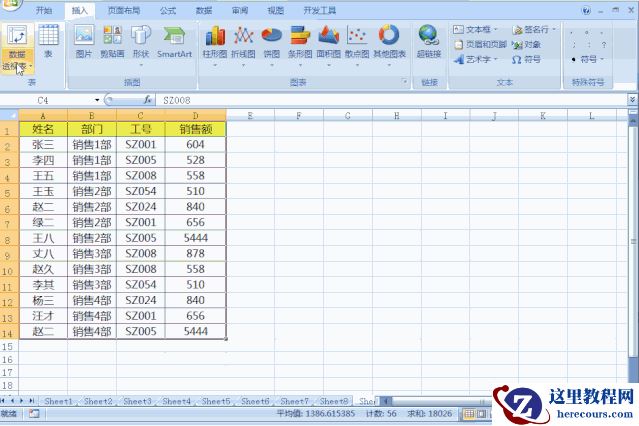 1、点击菜单栏:插入—数据透视表,在当前页面插入数据透视表区域;