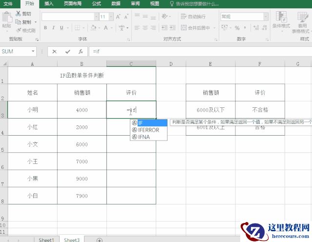 如 -1,在C3单元格输入 =IF(B3<=6000,”不合格”,”合格”),然后下拉填充单元格。