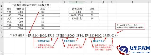 ▍ 三、多区间条件判断用法(函数嵌套)。
