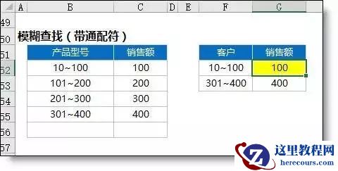 =VLOOKUP(G61,IF(,C61:C69,B61:B69),2,)