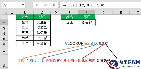 =VLOOKUP(找啥,在哪块儿找,找到后要它身上哪个地儿的东西,是准确找还是近似找找)