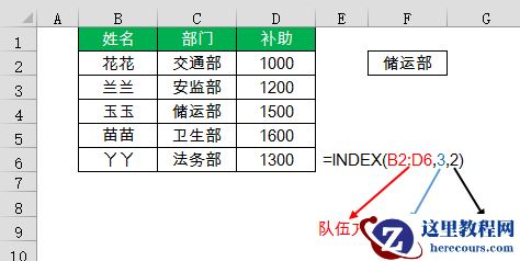 =INDEX(队伍方阵,第3排,左数第2列)