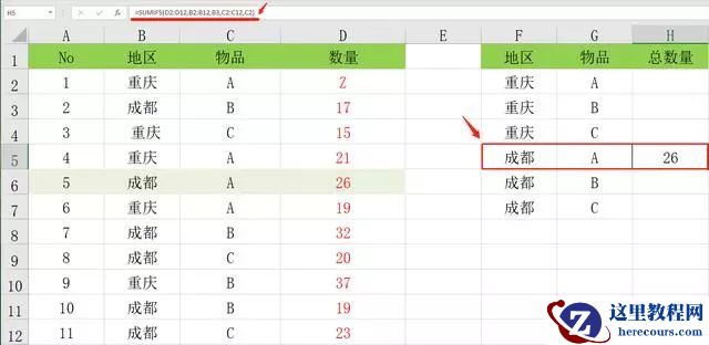 メ我们可以用SUMIFS完成统计,例如统计成都A物品的总数量。输入函数:Liability: