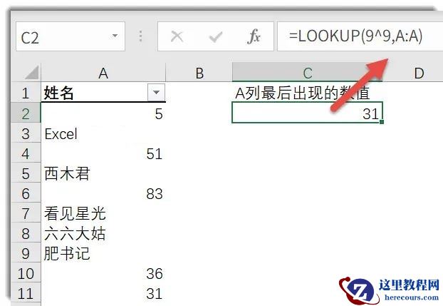 返回A列最后出现的数值▼