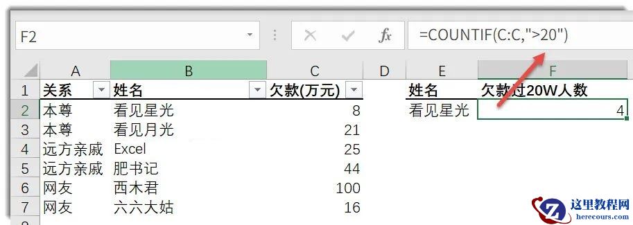 举个例子,欠我钱超过20W的一共有几人?