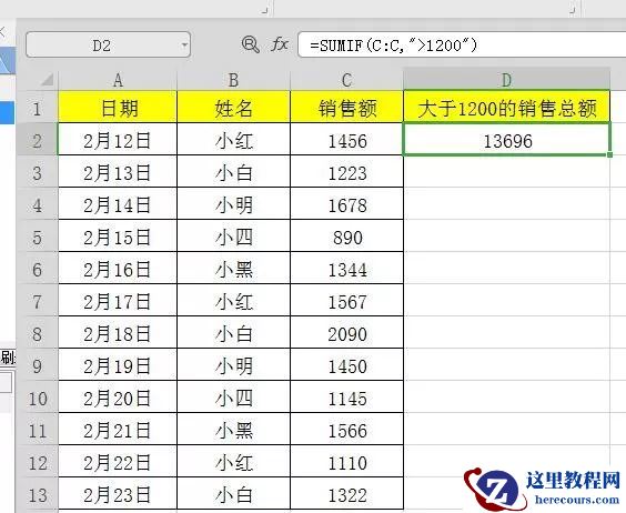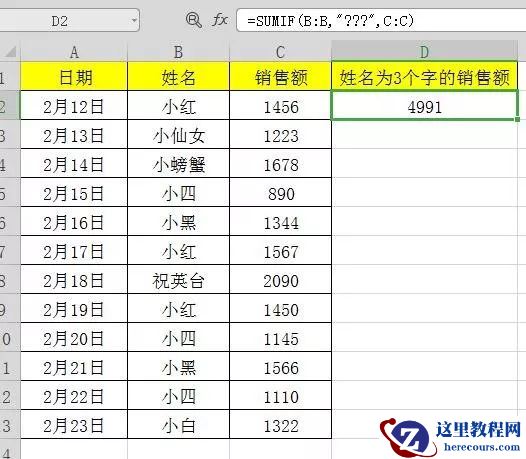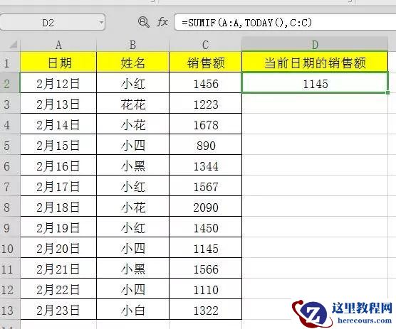 5、返回等于单元格D1中姓名的销售额