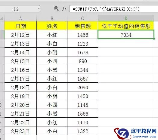 =SUMIF(C:C,”<“&AVERAGE(C:C))