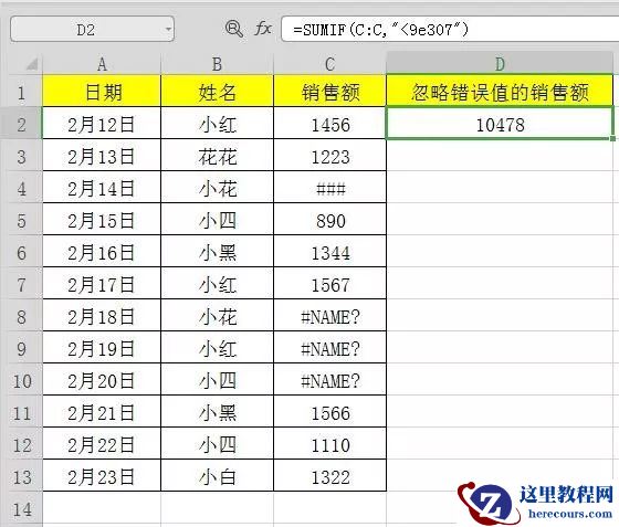 11、返回忽略错误值的销售额