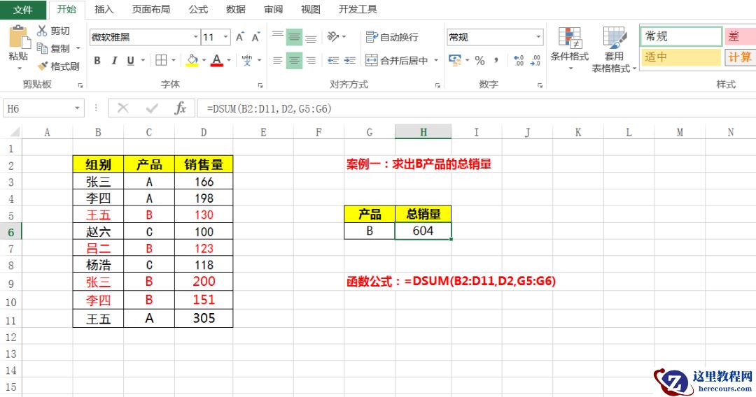 案例说明:我们需要在所有产品中求出B产品的总销量,这里就涉及到单条件数据求和。