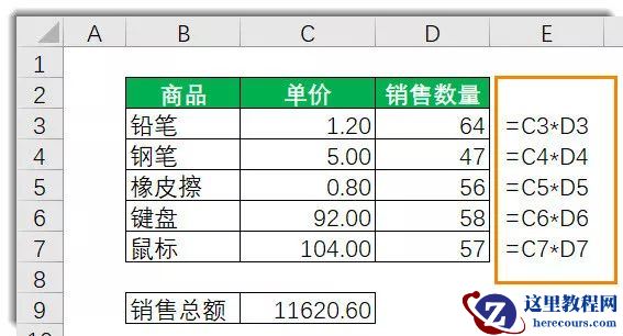 等于先将每个商品的销售金额计算出来,最后汇总求和。