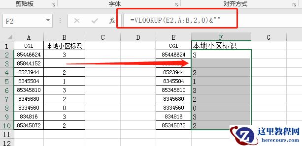 【方法2】函数公式:=VLOOKUP(E2,A:B,2,0)&””