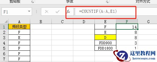 函数公式:=COUNTIF(A:A,E1)