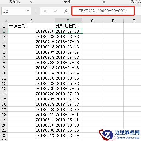 函数公式:=TEXT(A2,”0000-00-00″)