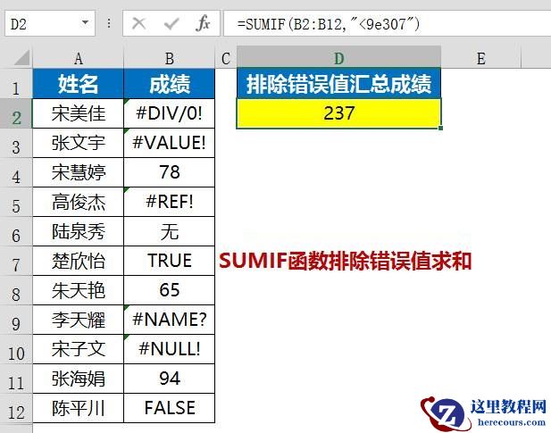 10SUMIF函数排除错误值求和