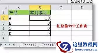 =SUM(Sheet1:Sheet19!B2)