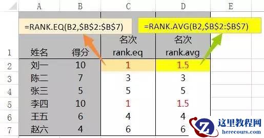 RANK.EQ(用法同RANK)和RANK.AVG的区别: