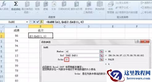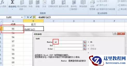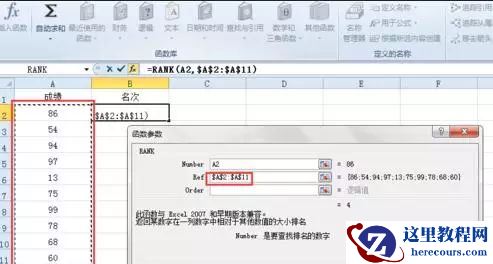 然后在 Ref 后面输入 A2:A11 或者直接用鼠标选中 成绩 下面的所有单元格即 A2到A11区域,然后按一下键盘上的 F4 。