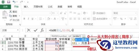 =rank(number,ref,[order])
