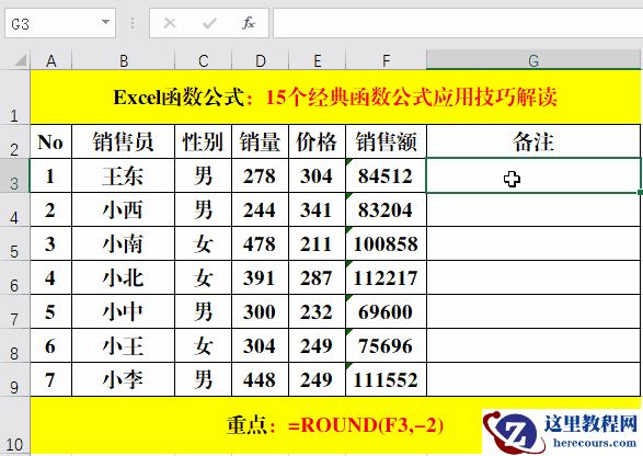 在目标单元格中输入公式:=ROUND(F3,-2)。