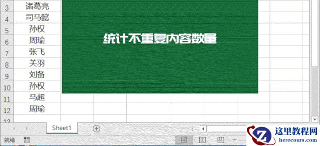 在A列中有许多数据,有重复和不重复的,如何统计出不重复内容数量?