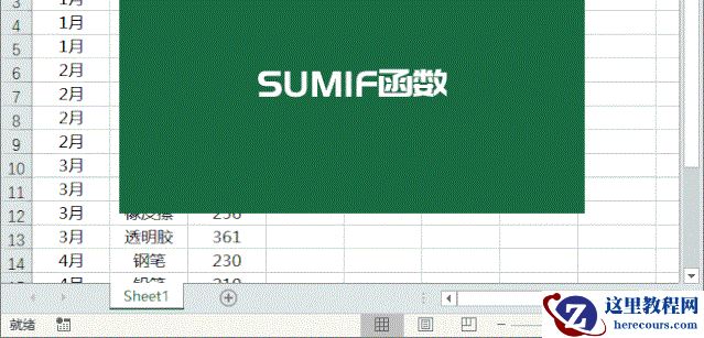 上面一个讲的是单条件求和,那如果有多条件怎么求和呢?第一个条件是按月份,第二个条件是按产品名,必须满足这两个条件进行求和。