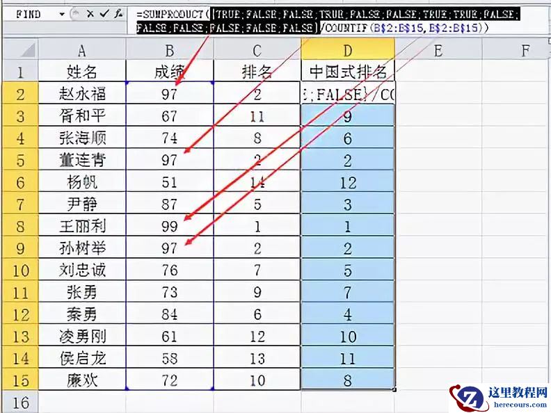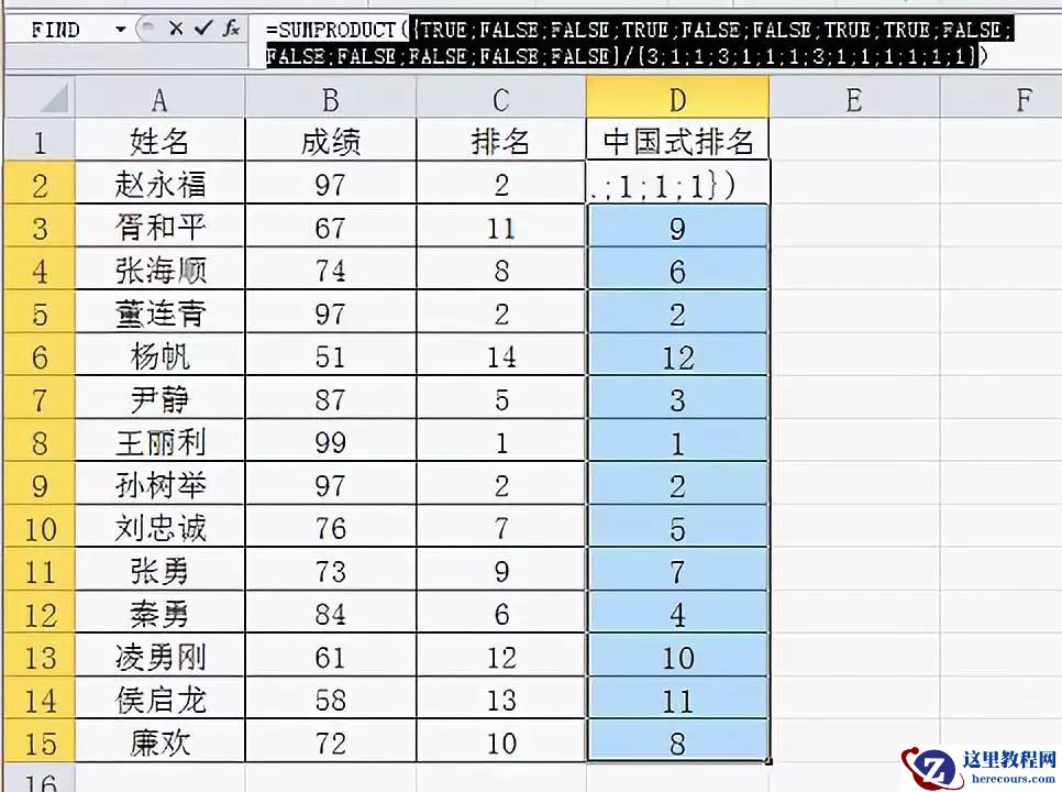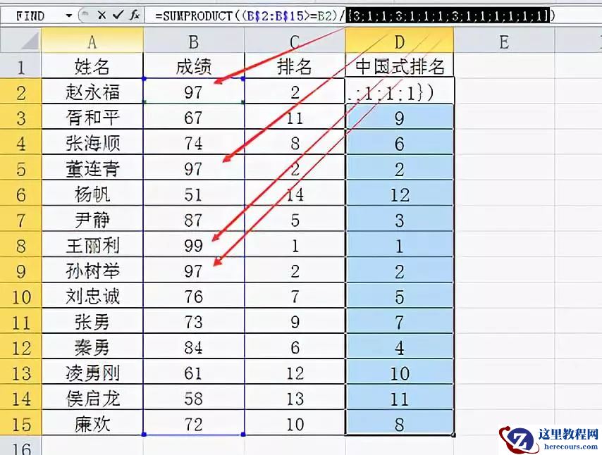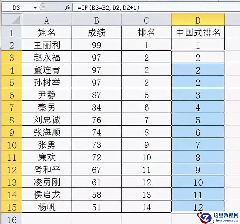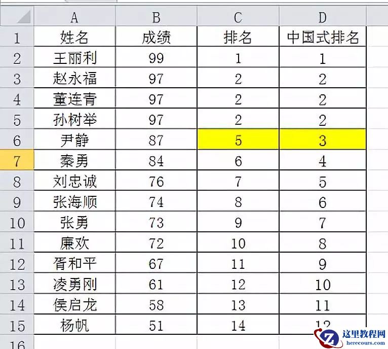 这种排名方式更加符合国人的习惯,因此也被称作中国式排名。