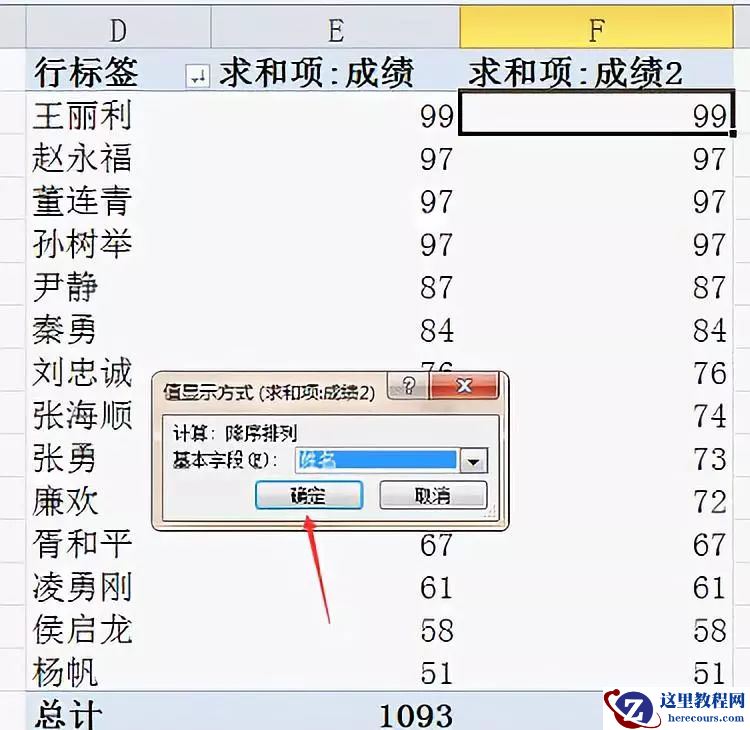 鼠标再选择F列透视表值区域点击右键,点击“值显示方式”-“降序排列”: