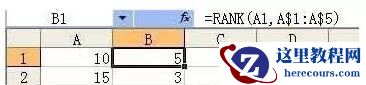 此例中,我们在B2单元格求20这个数值在 A1:A5 区域内的排名情况,我们并没有输入order参数,不输入order参数的情况下,默认order值为0,也就是从高到低排序。此例中20在 A1:A5 区域内的正排序是1,所以显示的结果是1。