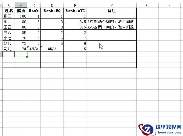 我们再来看一下啥是平均排位:在示例中,80排位总共有两个3、4,其平均值是3.5,因此得到结果是3.5;
