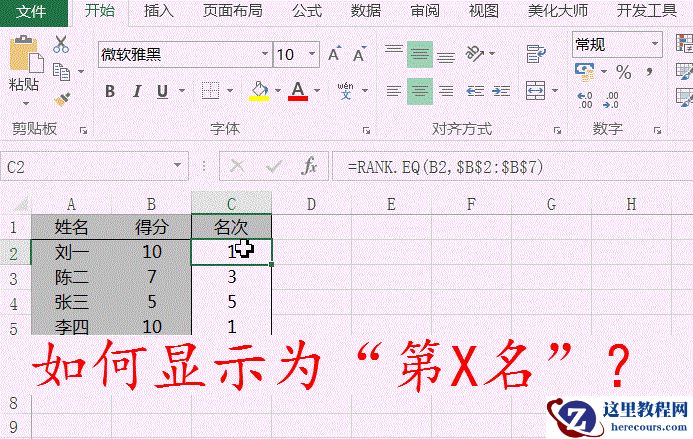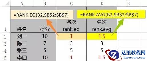 RANK.AVG Excel2010版以后 遇相同名次求平均