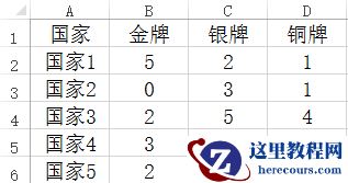 3、金银牌都相同时,铜牌多者名次排前
