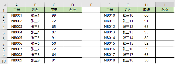 需要注意的是公式中的($C$2:$C$10,$H$2:$H$10),一定要加括号,不然会报错,这部分表示将两个区域$C$2:$C$10与$H$2:$H$10连接起来,变成一个区域。从而可以进行全部的排名。
