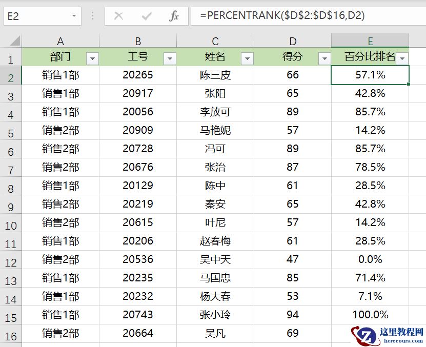=PERCENTRANK($D$2:$D$16,D2)