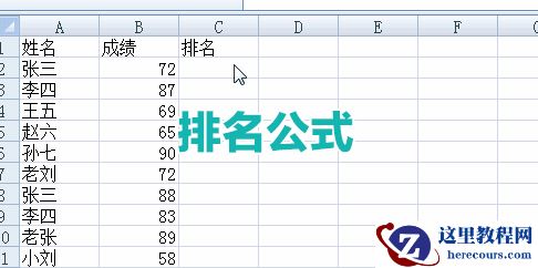 如果我们需要对Excel数据进行排名,比如某一个成绩排行,可以使用公式↓