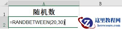 8、生成随机数函数,这里用到的是RANDBETWEEN,它可以随机生成指定范围的随机整数,这里要随机生成20~30范围随机数,我们输入“=RANDBETWEEN(20,30)”即可。