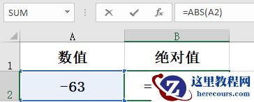 6、取绝对值,公式为“=ABS(A2)”取绝对值,将负数变成正数;